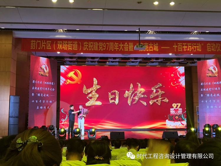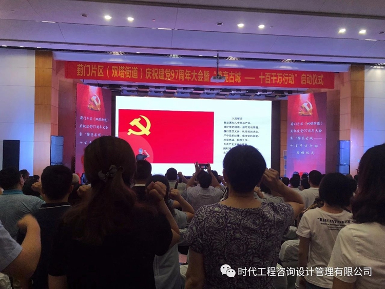 2018年6月30日上午9:30,葑門片區(qū)(雙塔街道)舉行慶祝建黨97周年大會暨“擦亮古城——十百千萬行動”啟動儀式。公司黨支部唐蘇滇、朱洪兩位黨員與轄區(qū)兩百余位黨員,近百家黨建共建單位代表齊聚一堂,慶祝黨的生日,重溫入黨誓詞,共同經(jīng)歷了一次思想洗禮。