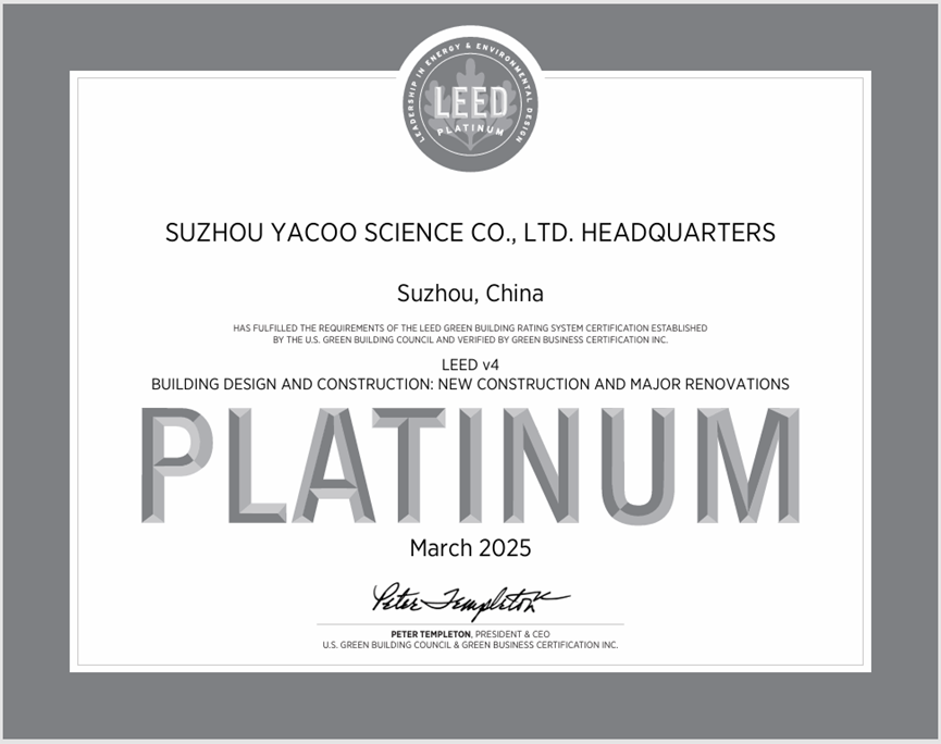 近日,由聯創時代(蘇州)設計有限公司設計的蘇州亞科科技股份有限公司總部大樓項目榮獲LEED(BD+C)鉑金級認證。